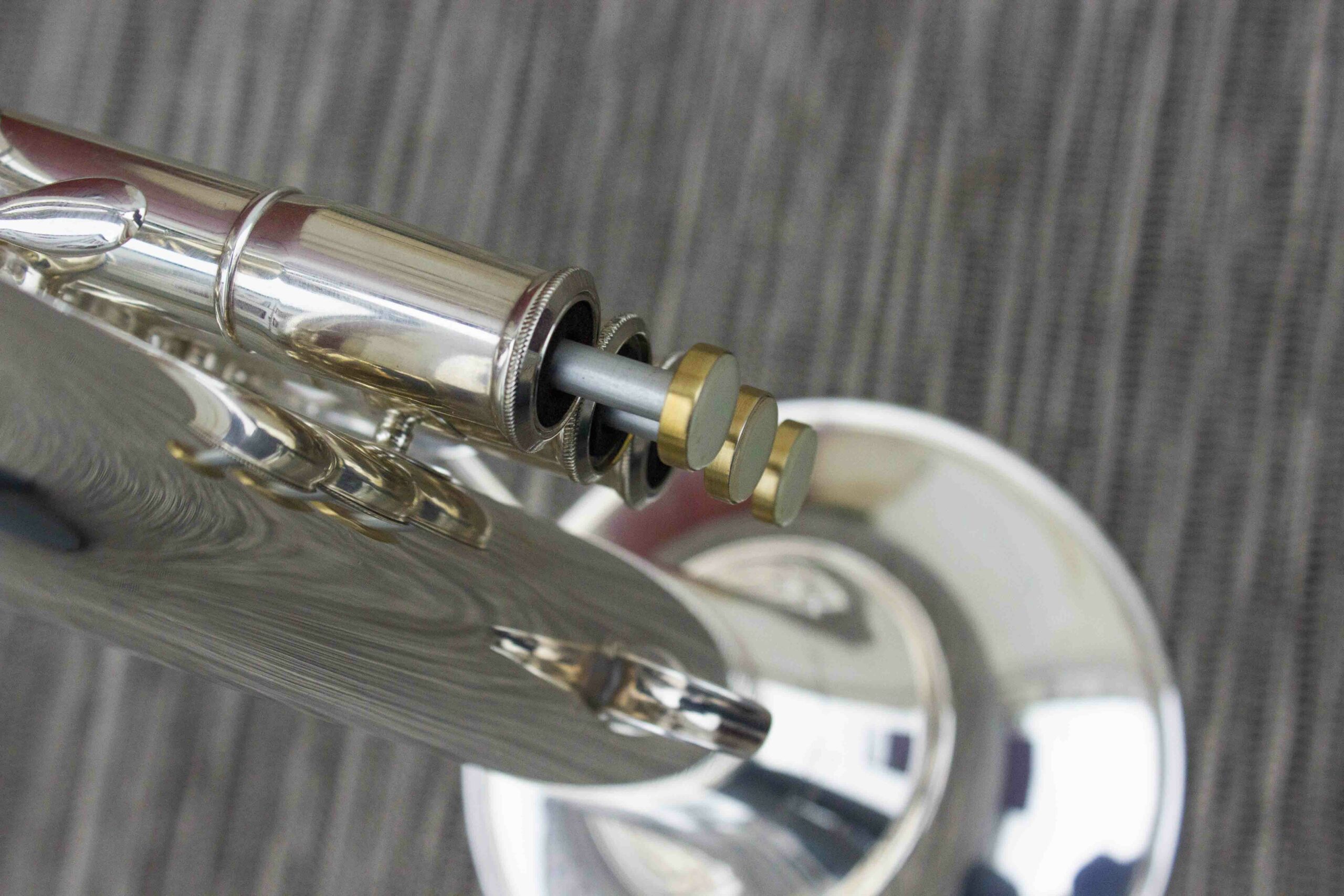modèle pro, facture française, trigger sur coulisse 1 et 3, gros pavillon cuivre rose argenté, mécanique TBE, superbe timbre