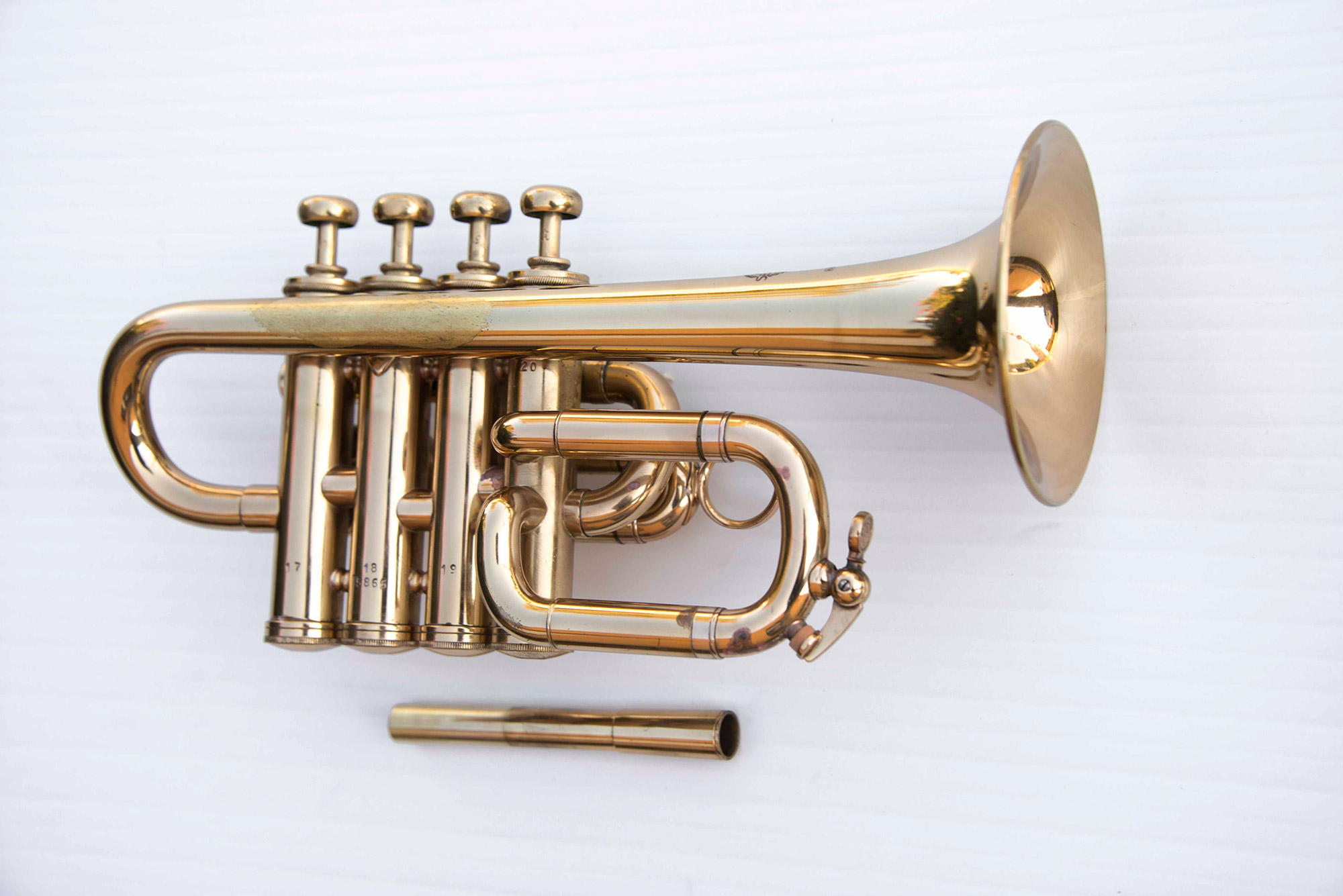 Un modèle « court » 4 pistons mis au point par Selmer (France) vers 1970 en collaboration avec  Maurice André.